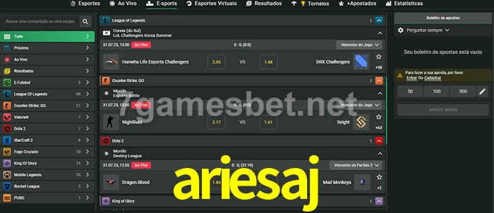 O ariesaj oferece uma grande seleção de opções de apostas em e-sports com probabilidades competitivas